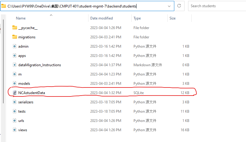 Move the previous sqlite3 database file under backend/students folder(path shown in image). Make sure to rename the database file to NCAstudentData.
