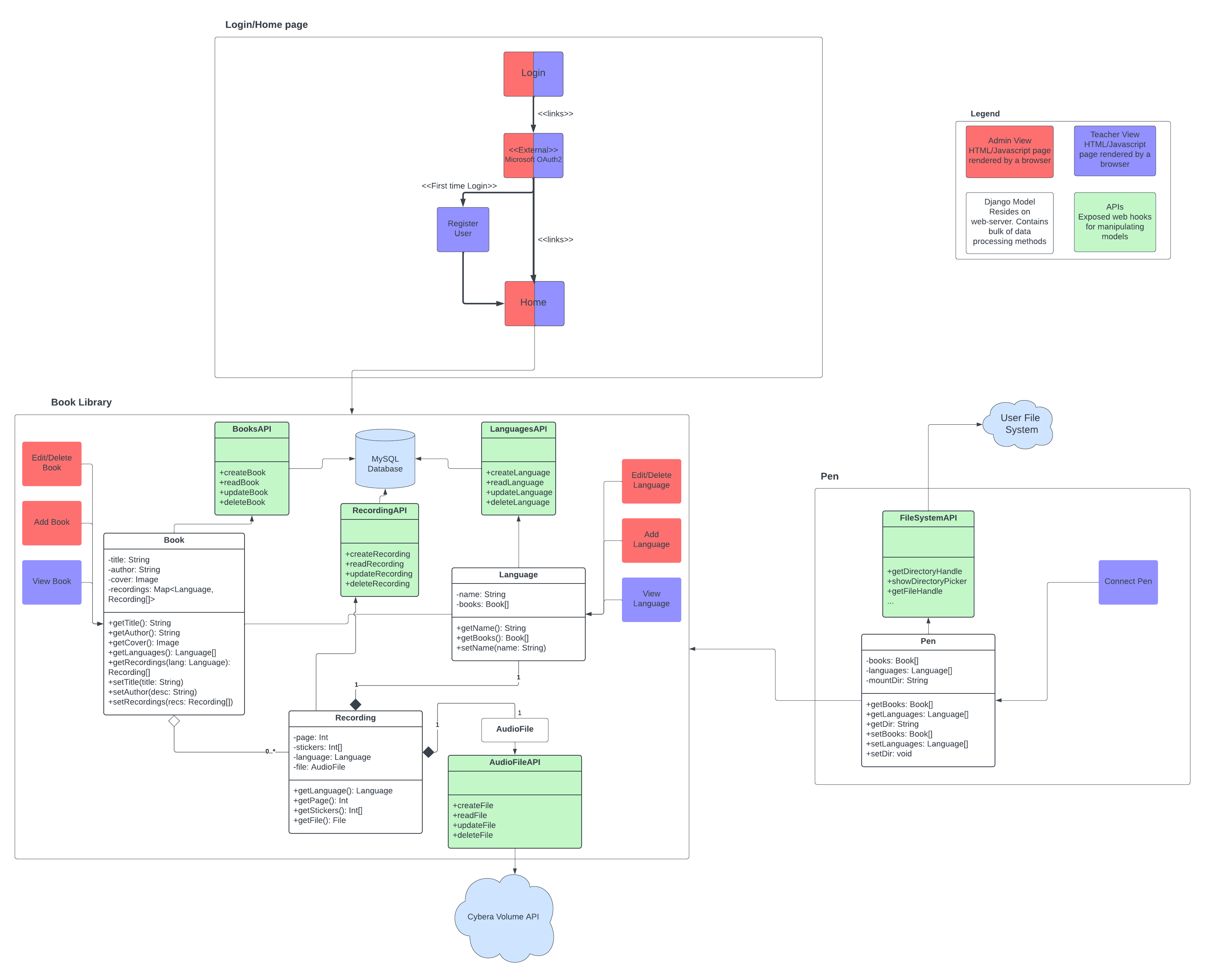 A client-side API to interact with a connected pen. It enables the frontend to add, replace, and view book recordings in different languages. An index file is stored locally on the pen to keep track of which languages are stored in each folder for each book, and it is updated/read accordingly whenever the API is called.